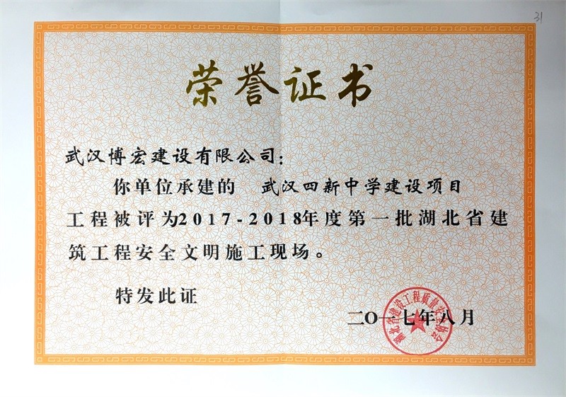 2017-2018年度第一批湖北省建筑工程安全文明施工现场 (武汉四新中学建设项目)