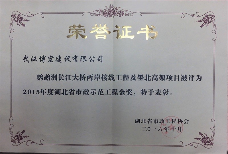 鹦鹉洲长江大桥两岸接线工程2015年度湖北省市政示范工程金奖鹦鹉洲接线2015省市政示范工程金奖