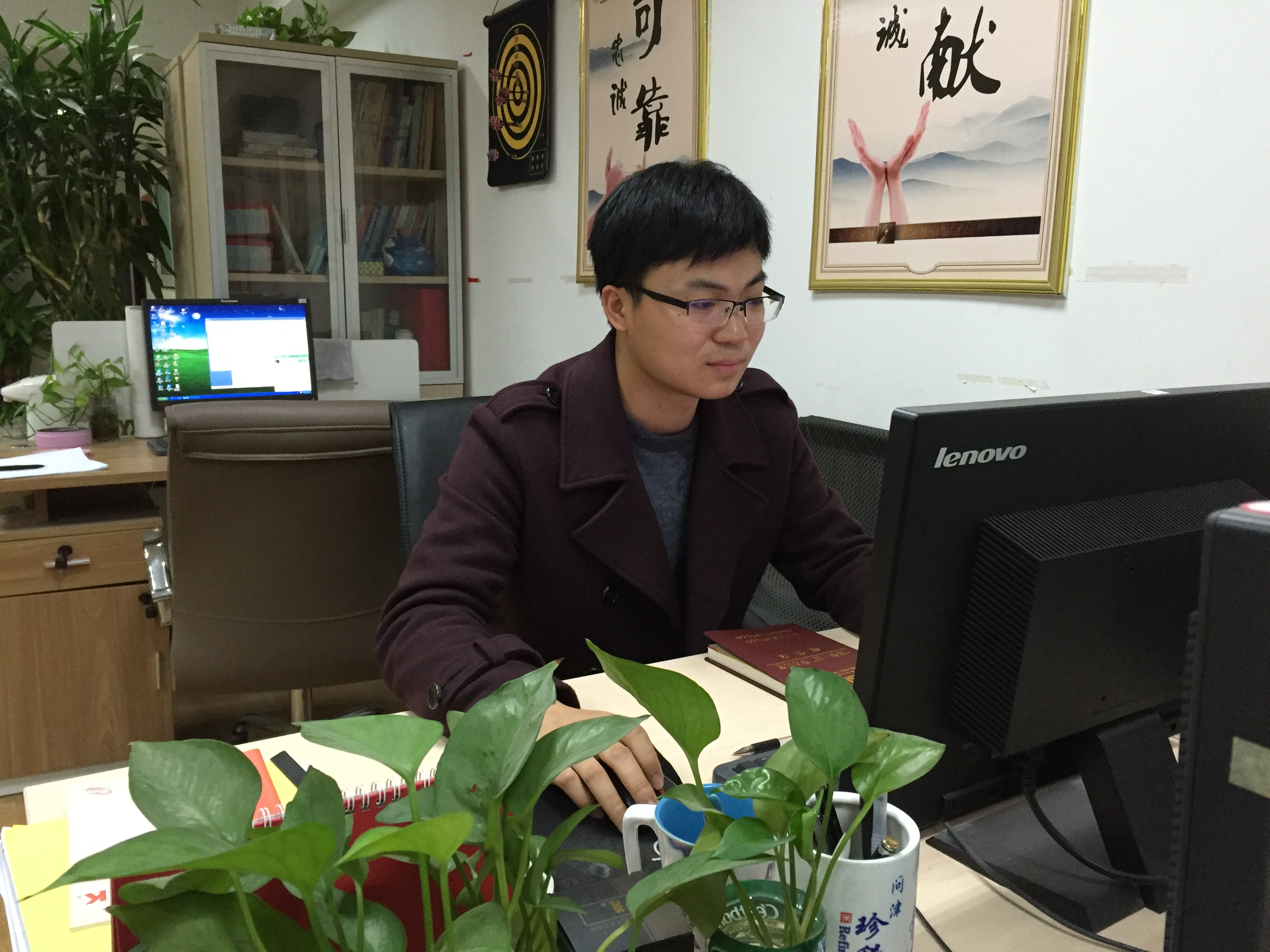 一个瘦高的90后小伙子,初见时,他正忙于工作,在电脑桌前敲打着什么,正担心会打扰他时,他却已经热情地招呼着乐鱼坐下,当得知乐鱼想要采访他时,他显得既有点腼腆,又有点惊喜,他就是今天乐鱼的主人公——周昌文。