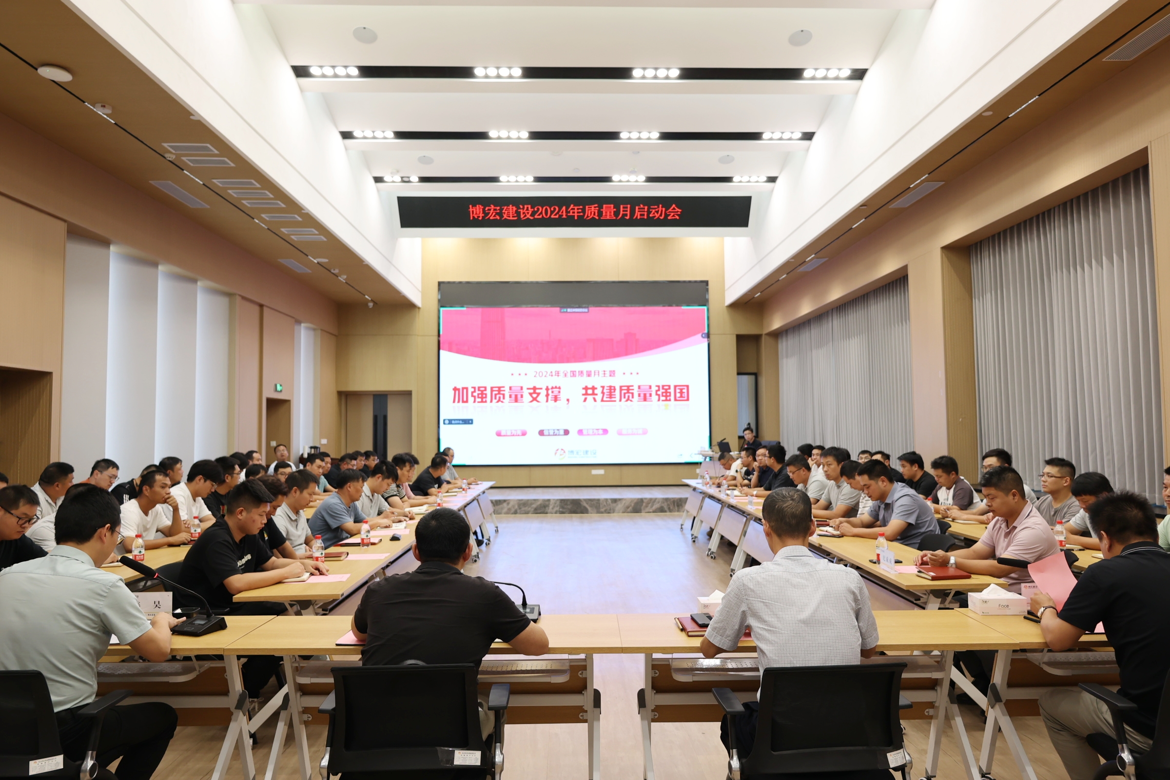 8月29日下午,乐鱼建设举办以“加强质量支撑,共建质量强国”为主题的2024年“质量月”启动会,党委书记、董事长、总经理邹勇,总经理助理李晖,市内外各项目部负责人及质量岗位人员90余人参与活动。会上,对“质量月”的主题、方针、理念和口号进行了深入宣贯,号召全体员工进一步强化质量意识,共同推动项目质量提升。