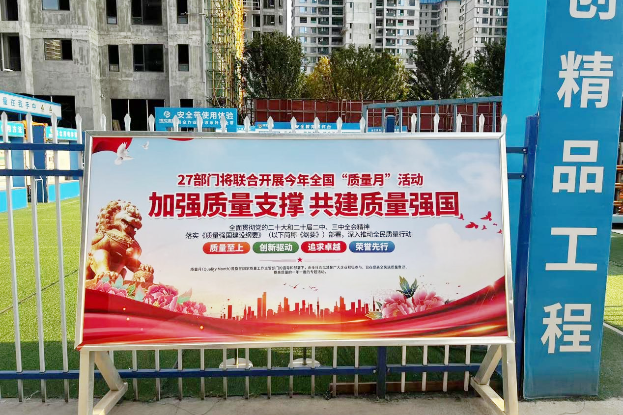 “质量月”活动期间,公司各在建项目利用横幅、展板、宣传画在办公区、生活区、施工现场等主要活动区域对质量月进行全方位的宣传,努力营造人人关心质量、重视质量、参与质量、享受质量的浓厚氛围。