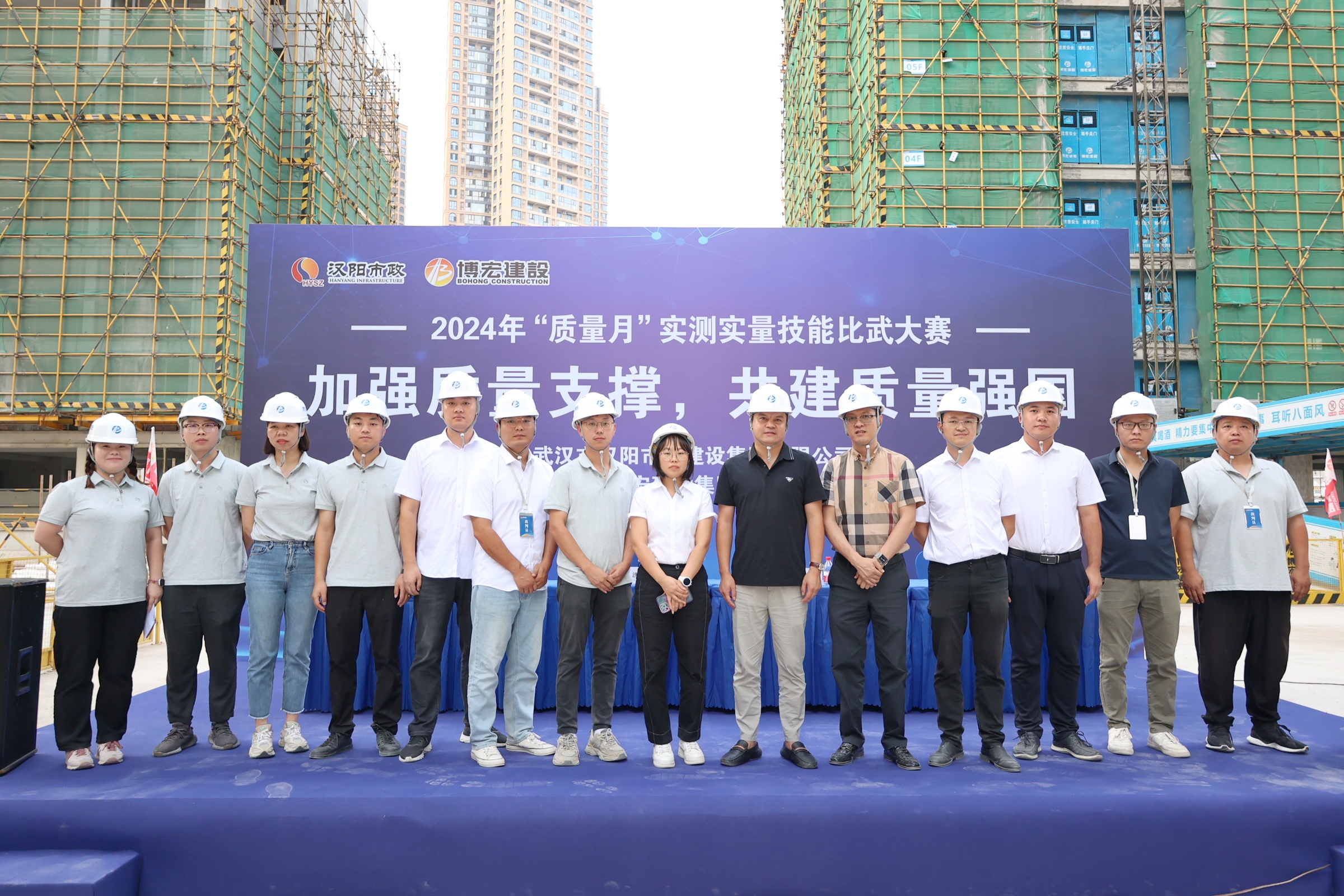 9月26日下午,公司在国博D12地块项目举行2024年“质量月”实测实量技能比武大赛,本次比赛内容涵盖剪力墙垂直度及平整度、顶板极差、结构回弹强度等数据的现场测量。经过激烈的比拼,七项目部凭借卓越的表现斩获第一名,二项目部荣获第二名,五项目部荣获第三名。